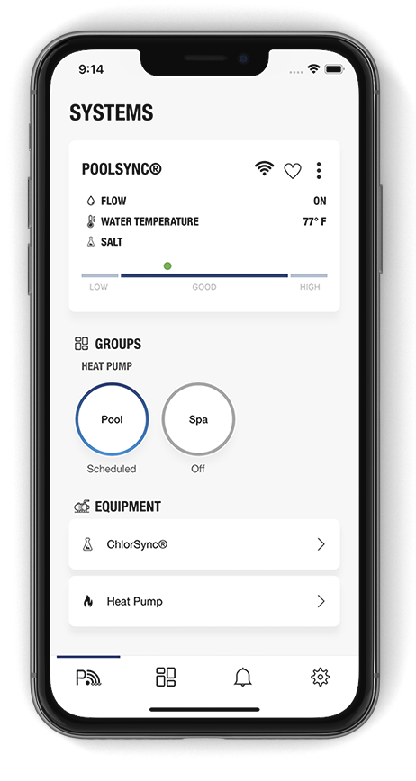 Control all basic pool functions right through your AquaCal® heat pump and the PoolSync® App.