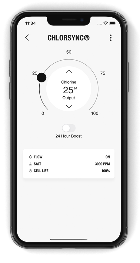 View the current salt level and water temp and adjust the chlorine output as needed.