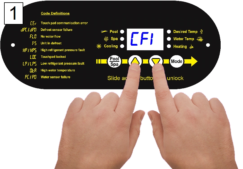 Press "Up" and "Down" buttons simultaneously until CF1 appears.
