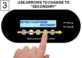 Go to the next connected heat pump and configure it as a secondary unit with a heat pump address of "01". Each additionally connected heat pump will require a unique heat pump address ("02", "03", etc.)