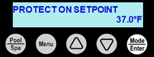 - Freeze protection will automatically activate when the water temperature falls below 37° F (3° C).
