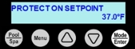 - "PROTECT OFF SETPOINT" can be adjusted from 40° F to 45° F (4° C to 7° C). The default is 42° F (5.5° C).