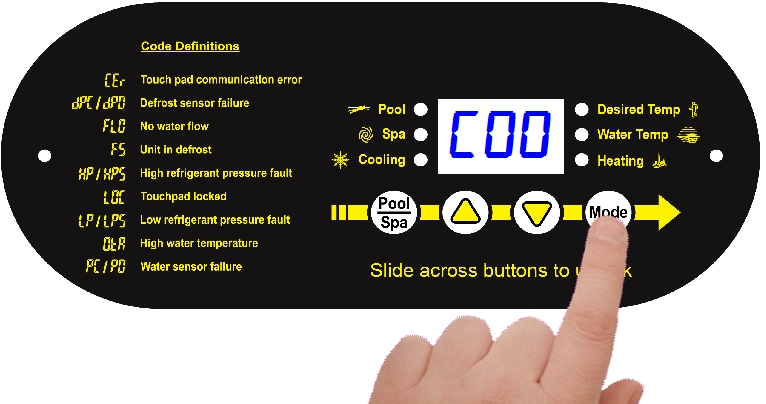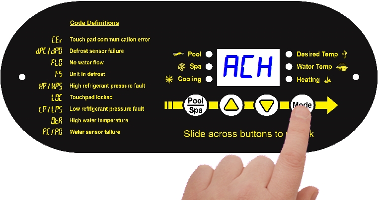 - Off - The heat pump will indicate it is deactivated. The current water temperature will be displayed.