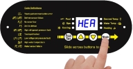 - Heating Mode - After fan and compressor starts, the red "Heating" light will activate.