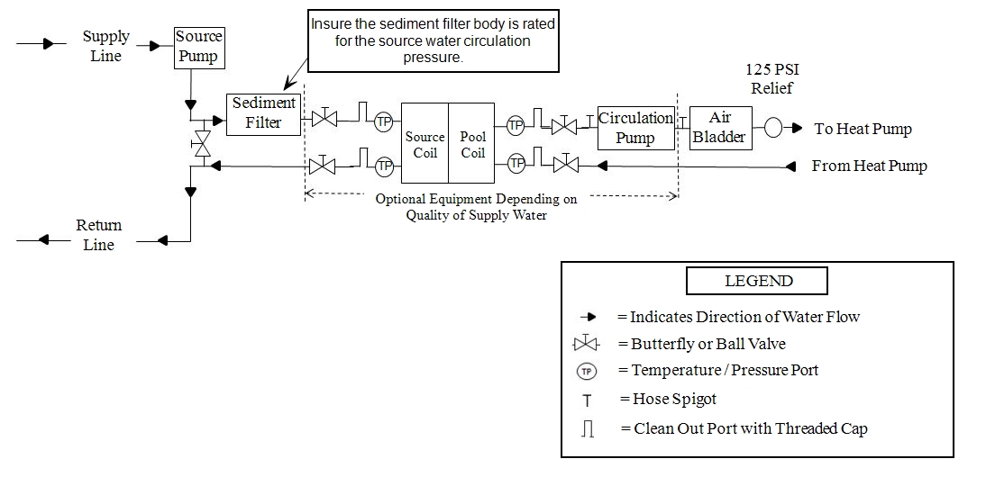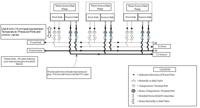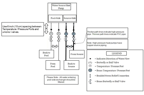 - If the installation does not closely follow any of the supplied plumbing diagrams, AquaCal® Technical Support is available for installation advice and guidance.